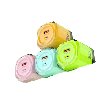 Cabezal de carga rápida de doble puerto de 30W, carcasa transparente Macaron de cubo de hielo grande QC3.0, Compatible con cargador Apple para Europa 5V/3A